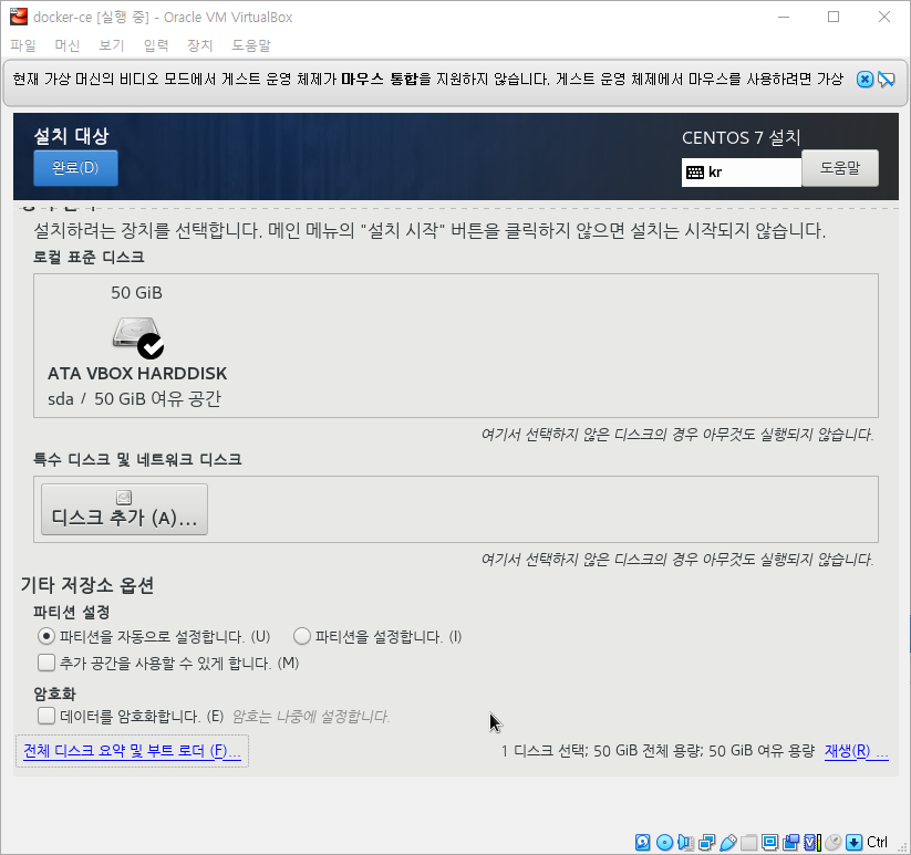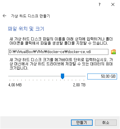 여유롭게 공간을 사용하기 위하여 50GB를 지정하였다.