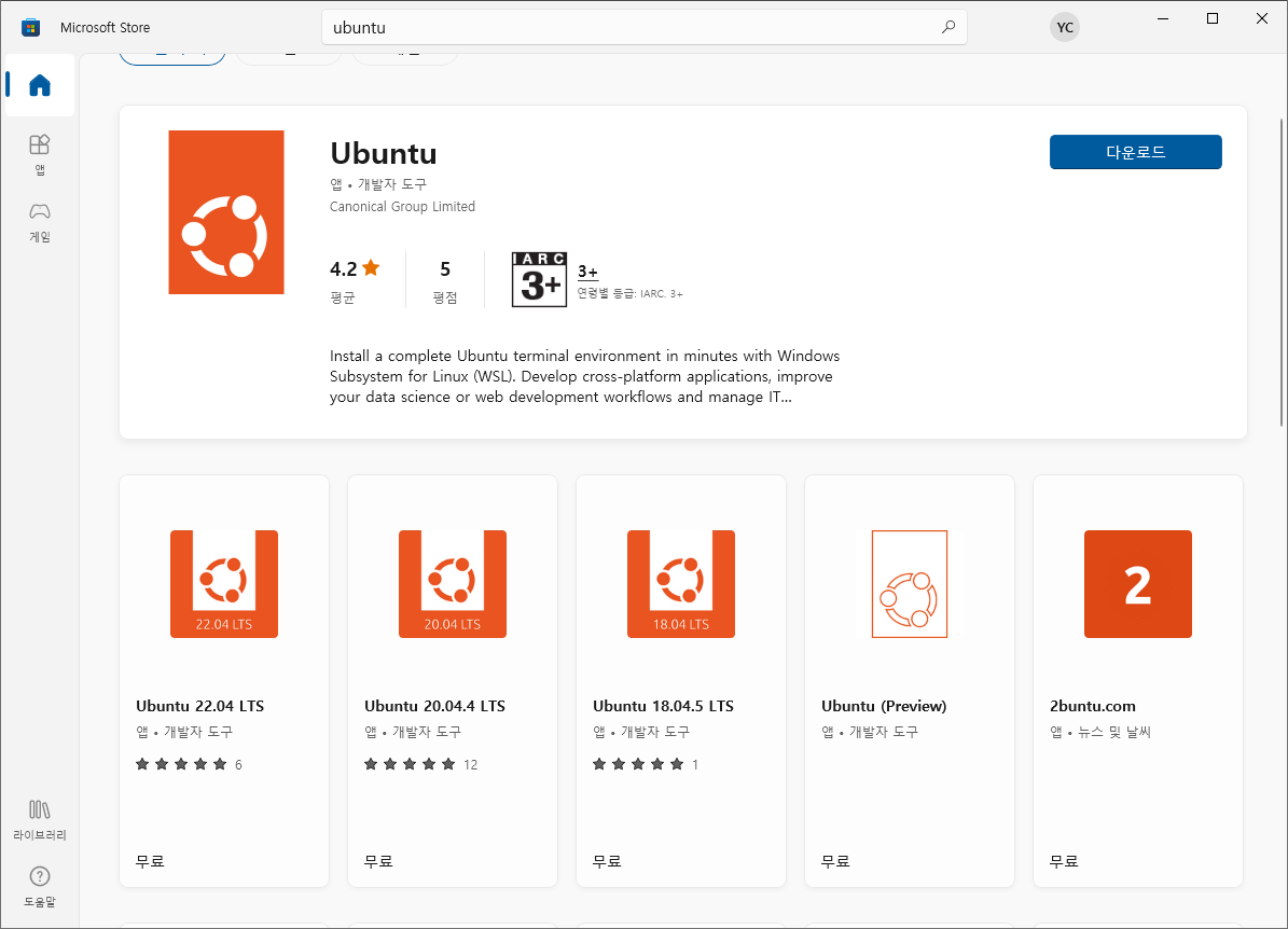 작업을 완료했습니다.5. MS 스토어 리눅스 설치