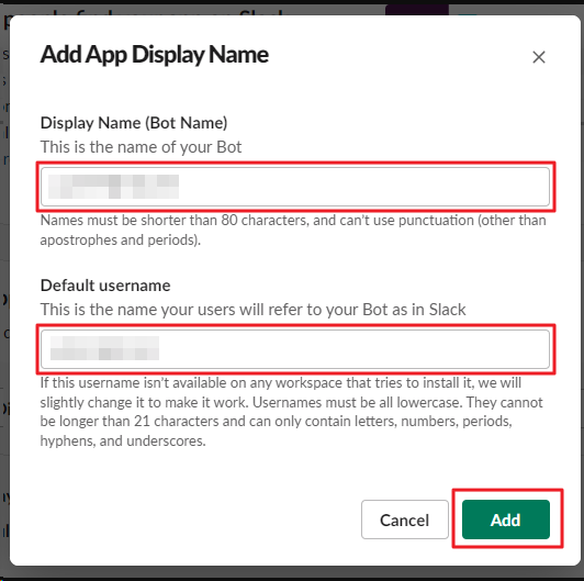 Step2: "Display Name" 과 "Default username" 을 설정
