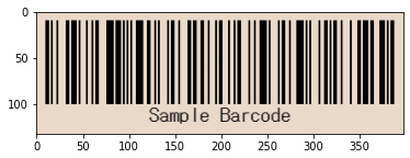 [Decoded(data=b'Sample Barcode', type='CODE128', rect=Rect(left=14, top=10, width=368, height=89), polygon=[Point(x=14, y=11), Point(x=14, y=99), Point(x=382, y=98), Point(x=382, y=10)])]